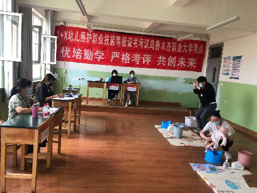 5月30日,我校师范学院顺利完成了教育部“1+X”幼儿照护职业技能等级证书乌鲁木齐市首考工作。本次考试共有师范学院学前教育2020级210名考生参加。考试内容分为理论机考和实操考试两个板块。乌鲁木齐妇联幼教集团、昌吉职业技术学院3名外派督导员、考评员来校督导,并参加了实操考评工作。考试期间,考场井然有序。