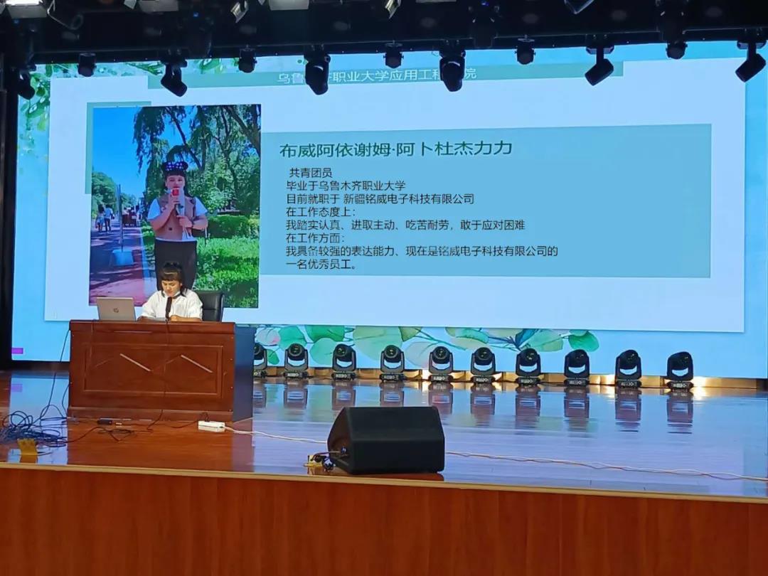 布威阿依谢姆·阿卜杜杰力力是该院2020年的毕业生,家里曾是建档立卡贫困户,曾因家庭困难想放弃上大学的机会,学院帮助她申请了国家助学金,使她顺利完成了学业。如今,布威阿依谢姆·阿卜杜杰力力在新疆铭威电子科技有限公司工作,月收入在5000元以上,全家人摆脱了贫困,过上了富裕的生活。布威阿依谢姆·阿卜杜杰力力告诉在场的同学们要为自己的未来做好准备,为实现自己的理想而努力,这些年自己深切感受到了国家对大学生的重视与培养,尤其是对贫困学生的助学扶持政策,自己深受其益。