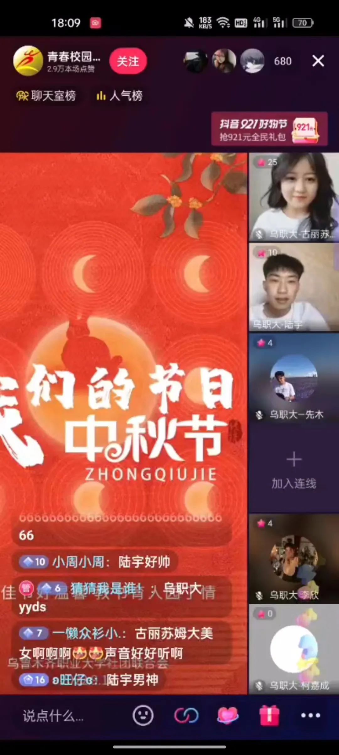 9月10日,中国传统节日中秋节恰逢第38个教师节,值此双节到来之际,我校团委组织各团支部通过腾讯会议、钉钉直播、抖音等线上形式开展“铭恩教师节 团圆中秋月”特别主题团日和“ 我们的节日中秋节”文艺晚会活动,全校共计8000余名团员青年参加。